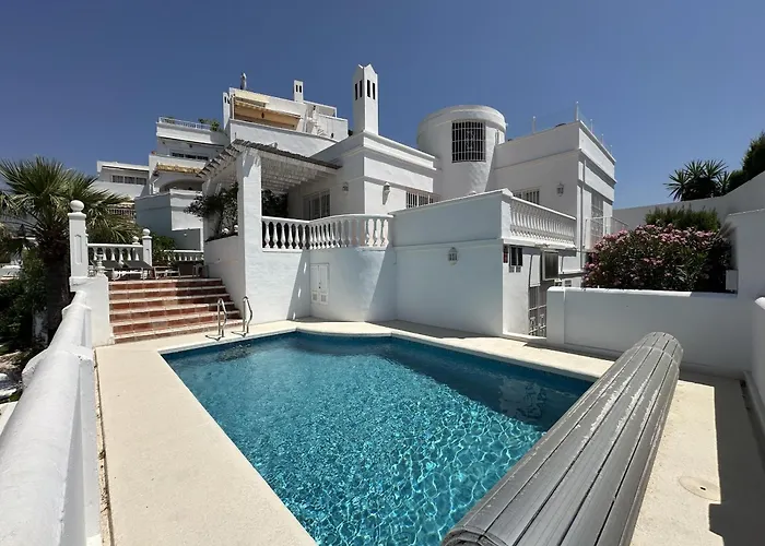 R1386 Villa Jazmin - Burriana Nerja est situé à moins de 6 minutes de marche du Club Internacional de Nerja et offre à ses clients une terrasse, ainsi qu'une piscine privée. Proposant un Wi-Fi, cette villa de 2 chambres est située à 2 km de la Plage Torrecilla.